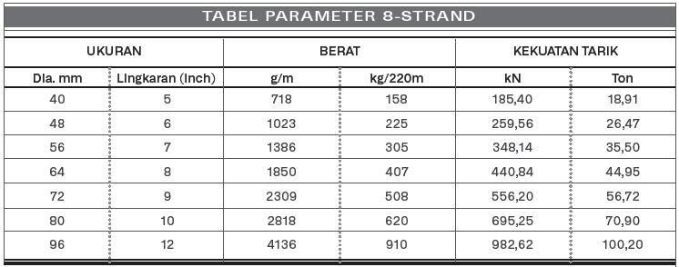 Kami menyediakan tali yang siap digunakan di industri perkapalan, perikanan, Oil & Gas, dan lain-lain. Bila anda ingin mengetahui lebih lanjut tentang produk kami, jangan pernah ragu untuk menghubungi kami. kami akan dengan senang hati membantu anda.